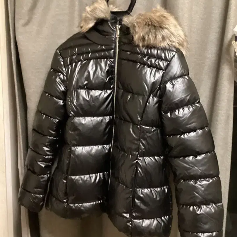 헤이세이 갸루 퍼 달린 블랙 다운 자켓