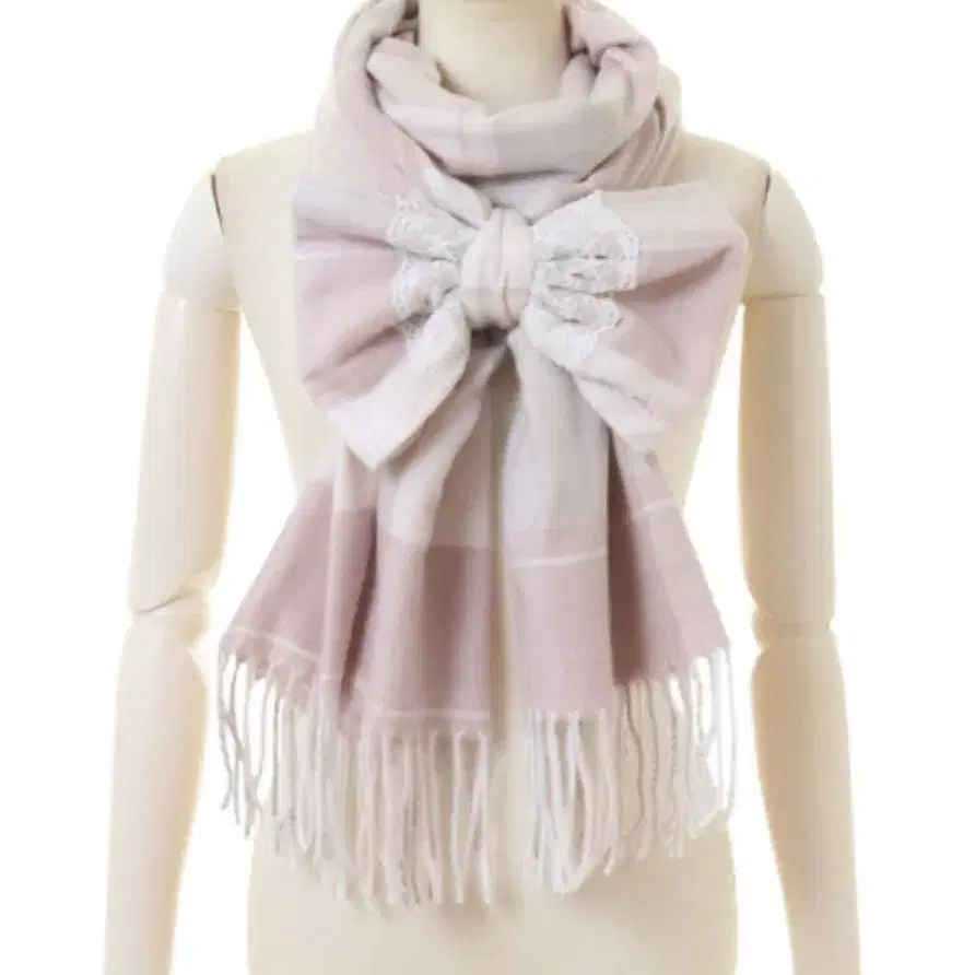 LIZLISA 체크 리본 머플러 스톨 그레이 양산형