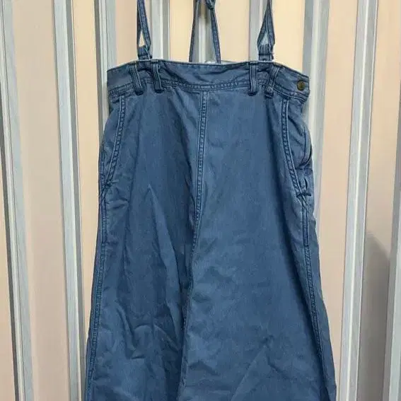썸씽 슬릿 플레어 서스펜더 데님 롱 스커트