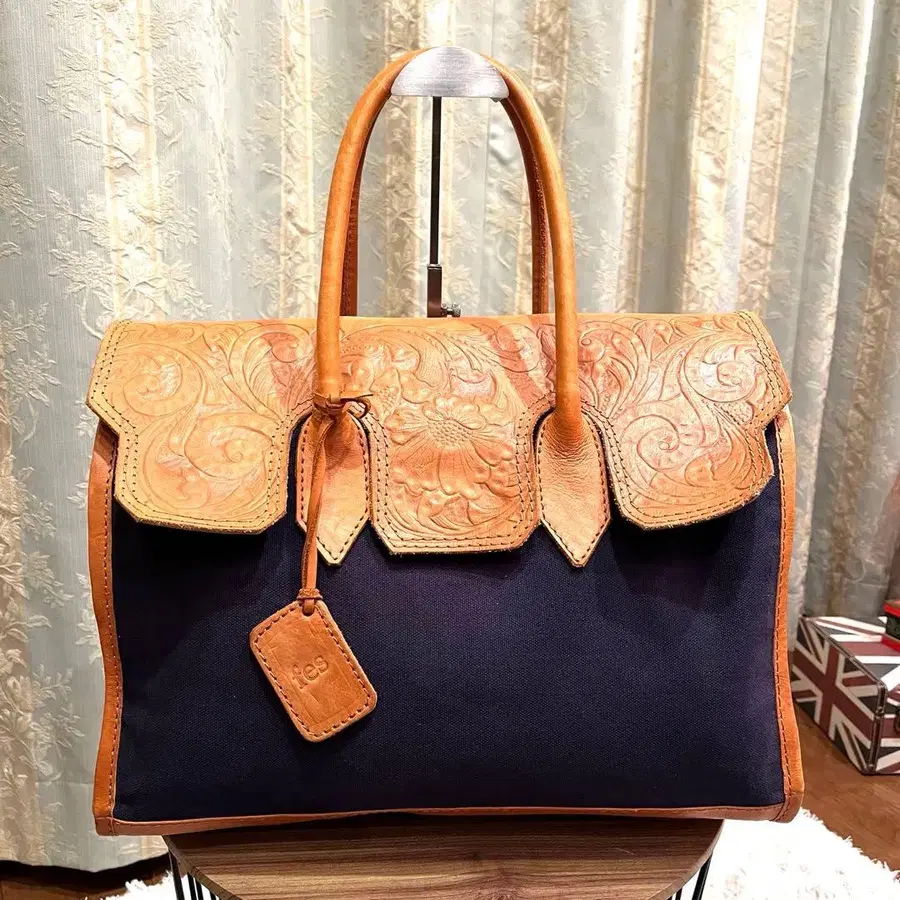 고품질 fes 페스티벌 핸드백 카빙 가죽 캔버스 네이비