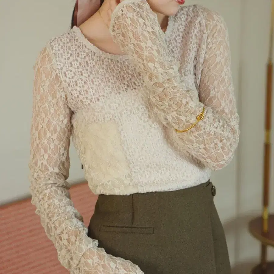 hinari 절개 레이스 상의 그레이쉬 베이지