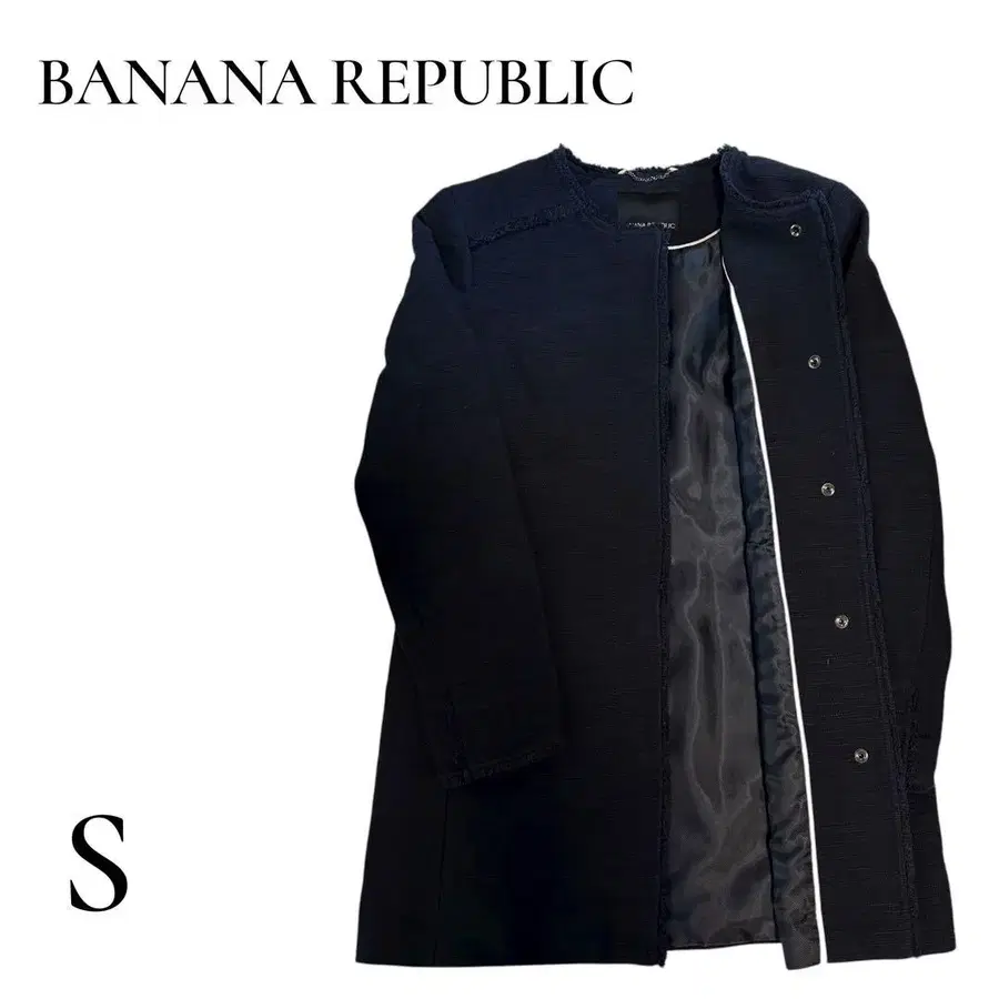 새상품급 바나나리퍼블릭 네이비 노카라 코트 S 프린지 바나리파