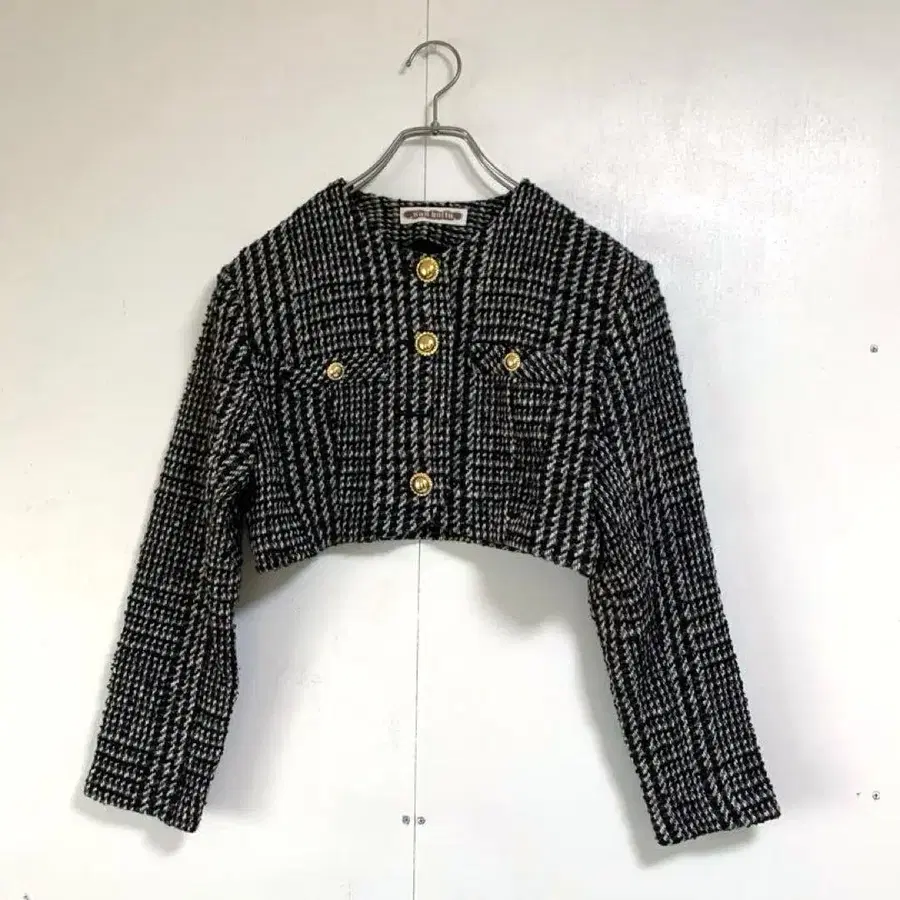 트위드 크롭 자켓 골드 버튼 일본제 헤이세이 빈티지
