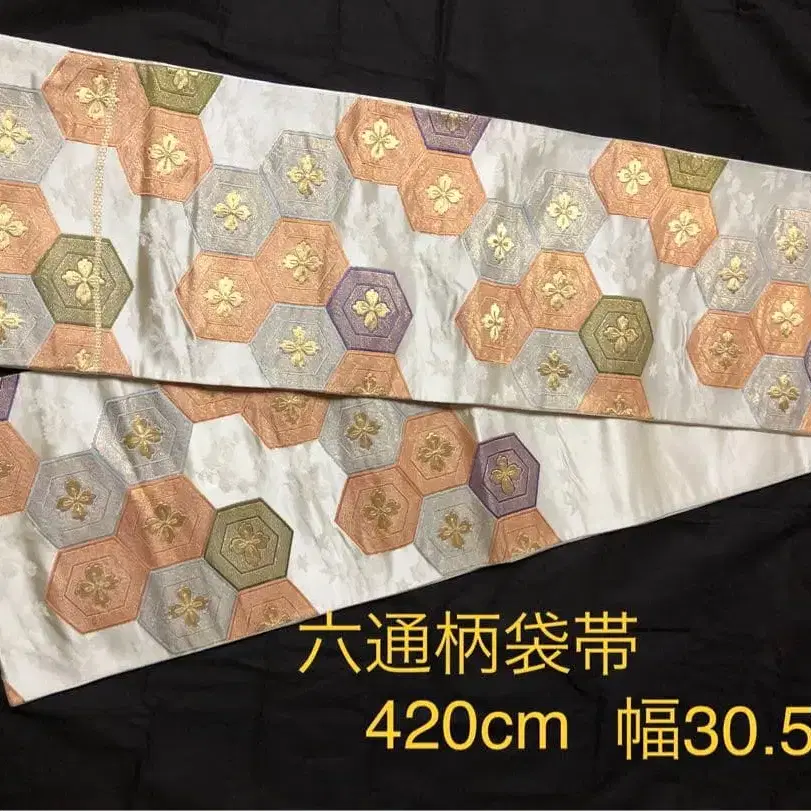 육통 무늬 후쿠로 오비 420cm 순수 실크