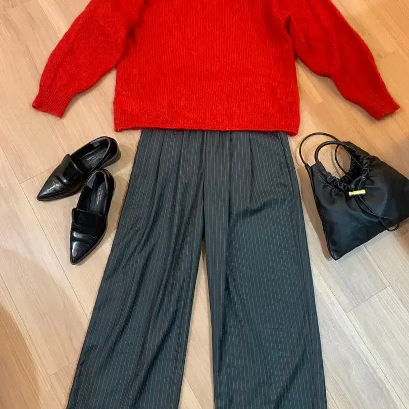 스트라이프 와이드 팬츠 다크 그레이 새상품