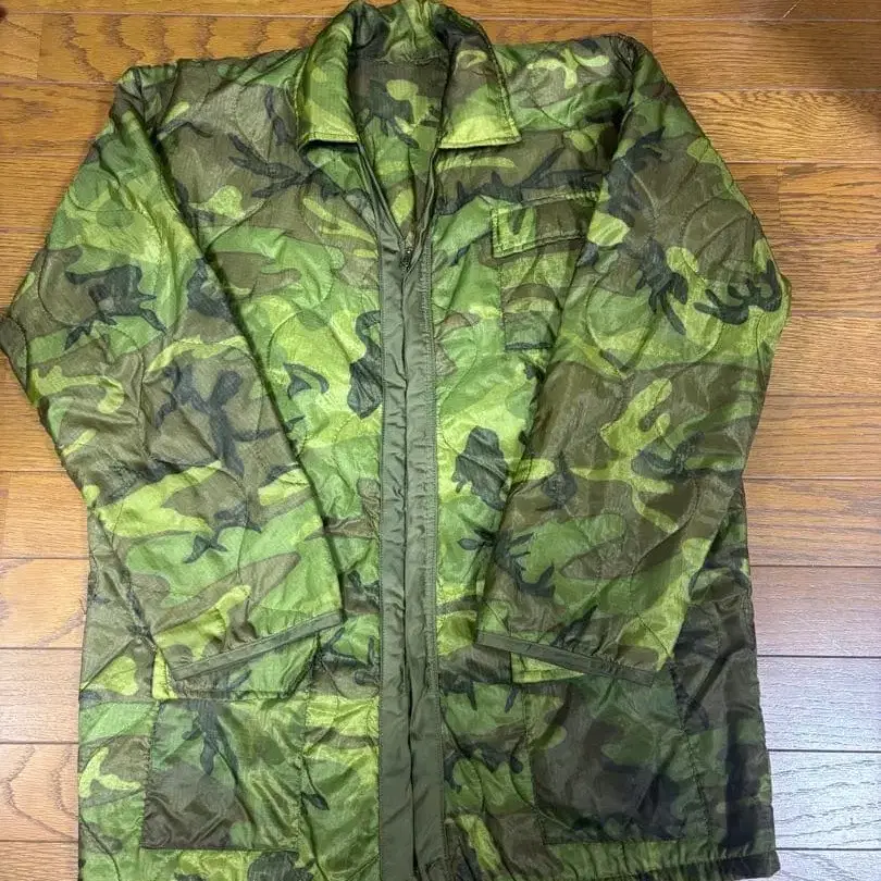 70s 카모플라쥬 퀼팅 라이너 롱 자켓