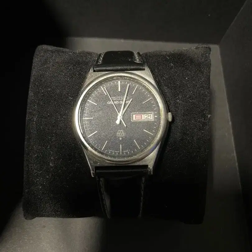 SEIKO 그랜드 쿼츠 손목시계 블랙 다이얼 가죽