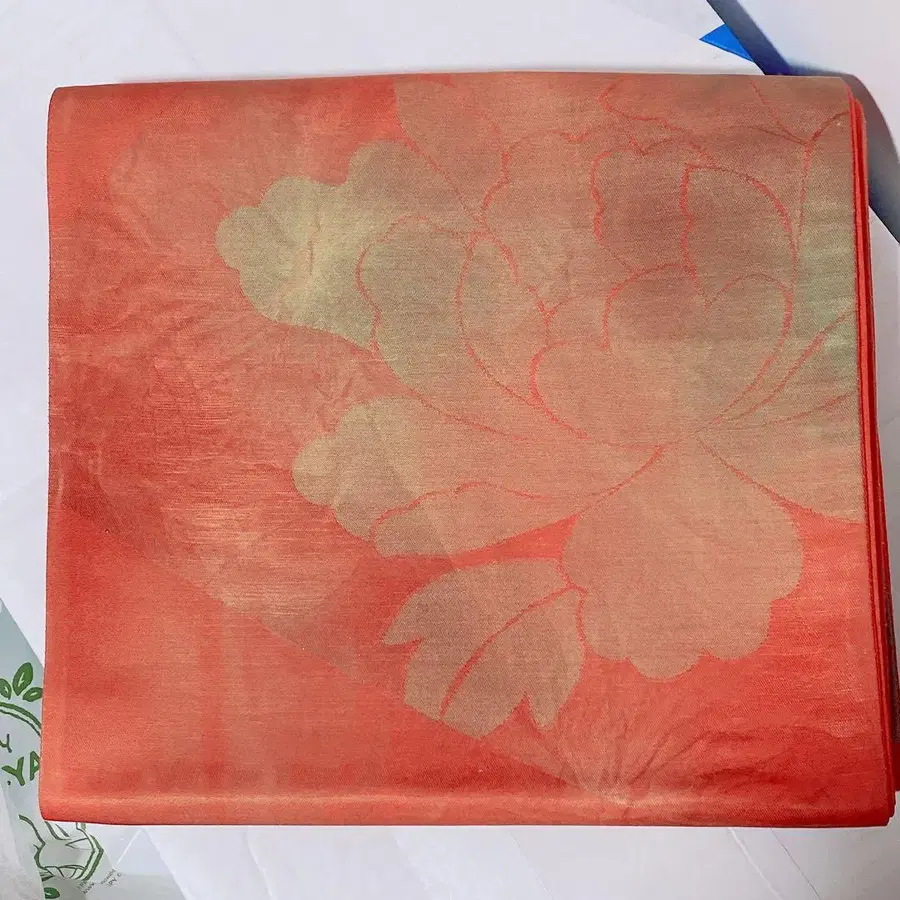 새상품급! 호몬기 기모노 후쿠로 오비 오렌지 레드 국화