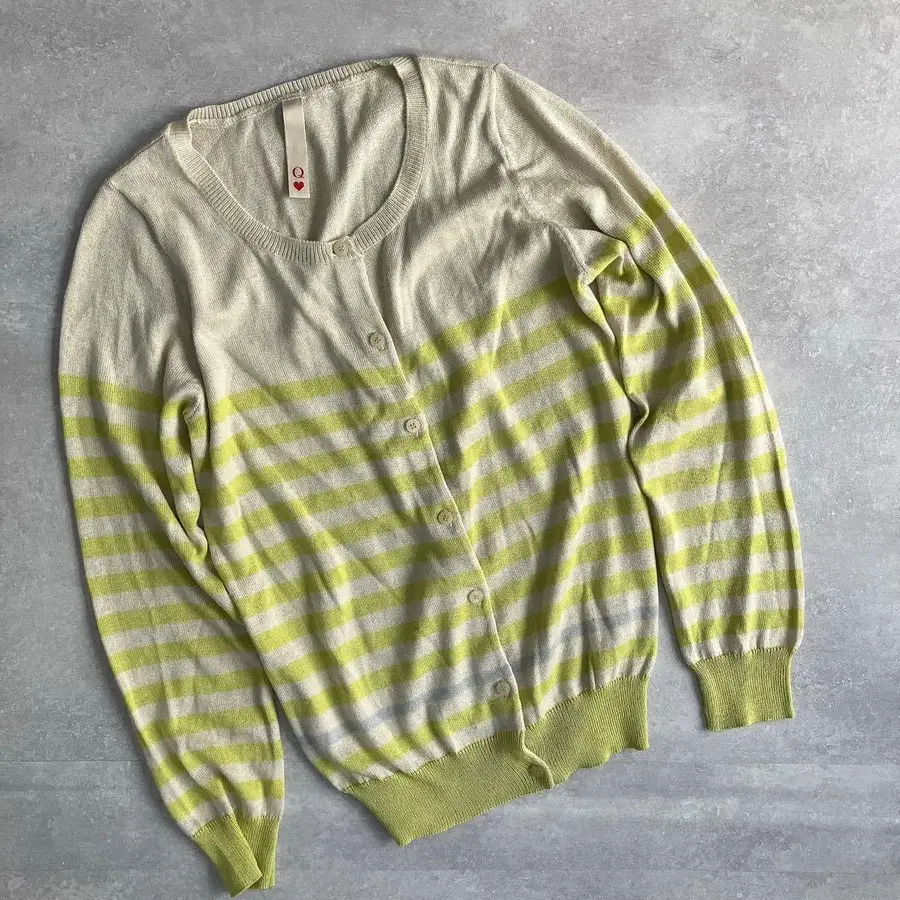 Q 큐 보더 니트 가디건 옐로우 컬러 봄 색상 얇은 소재 M 상당