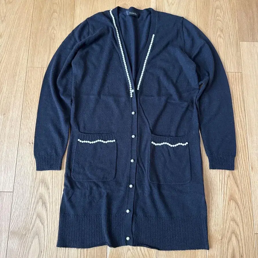 [새상품급] 잉게보그 다크 네이비 컬러 롱 가디건 펄 조절 버튼 네이비