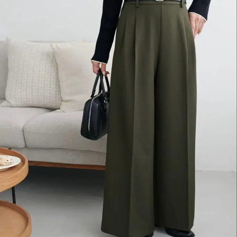 택 포함 미사용 새상품 욕심쟁이 2턱 와이드 팬츠 카키 ML 사이즈