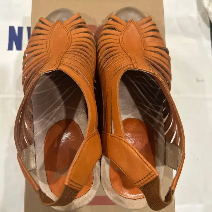 캠퍼 오렌지 계열 베이지 가죽 웨지 힐 샌들