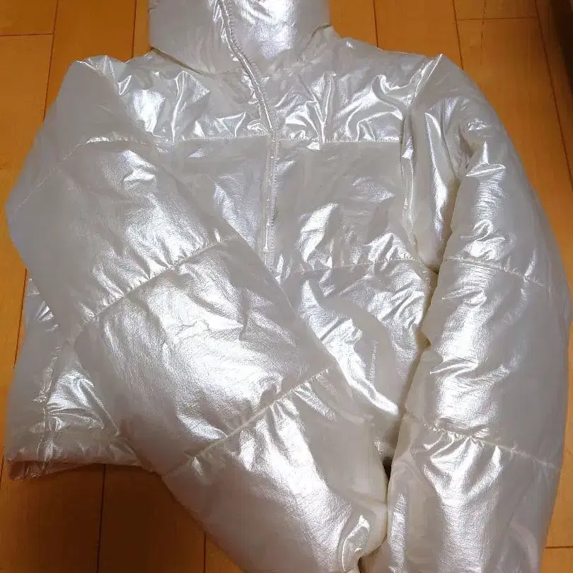 초특가 광택 화이트 다운 자켓 숏 기장 새상품급