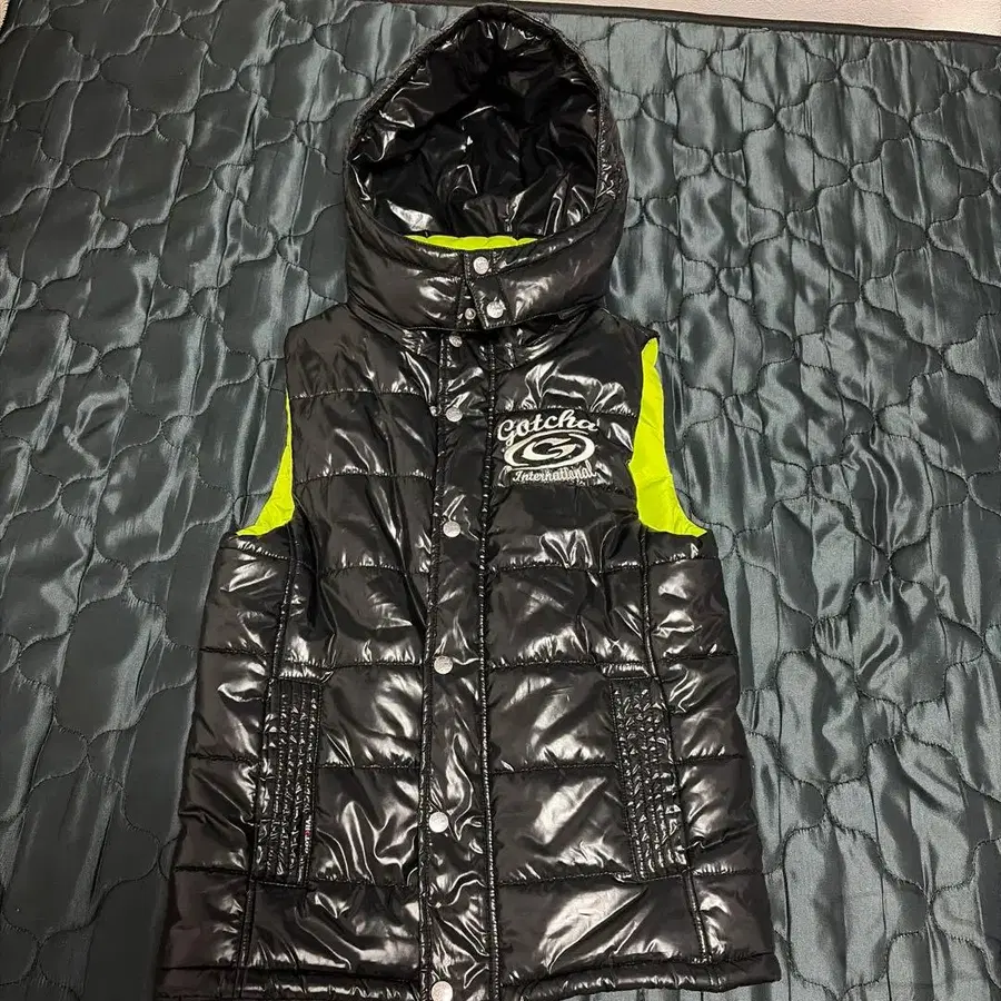 Gotcha 후드 부착 베스트 S 사이즈 블랙/라임