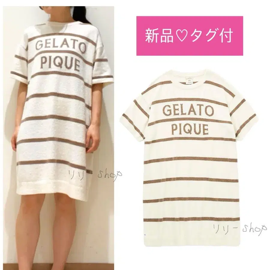 택 포함 새상품 젤라또피케 스무디 로고 자카드 원피스