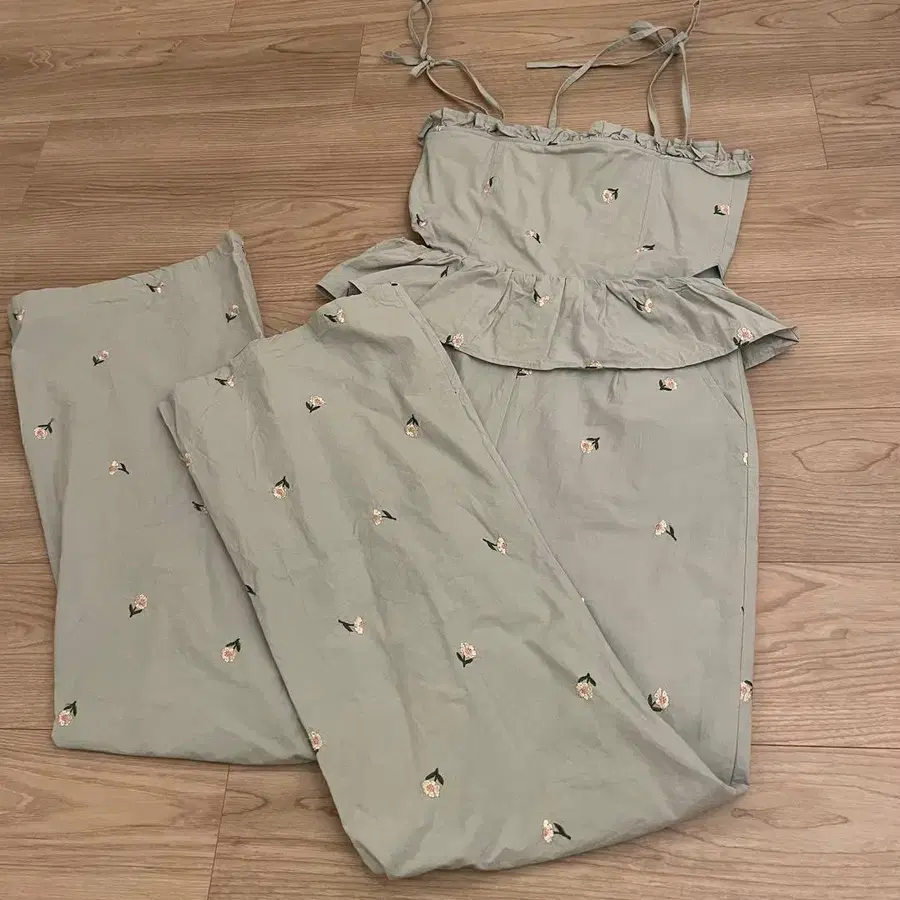 honey mi honey 꽃무늬 자수 그린 페플럼 살로펫 팬츠