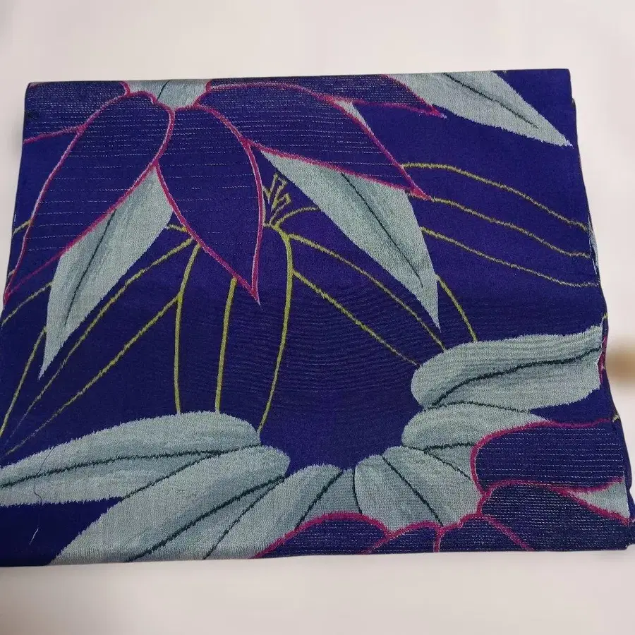 세척 제본 네이비와 스카이블루 꽃무늬 기모노 원단.