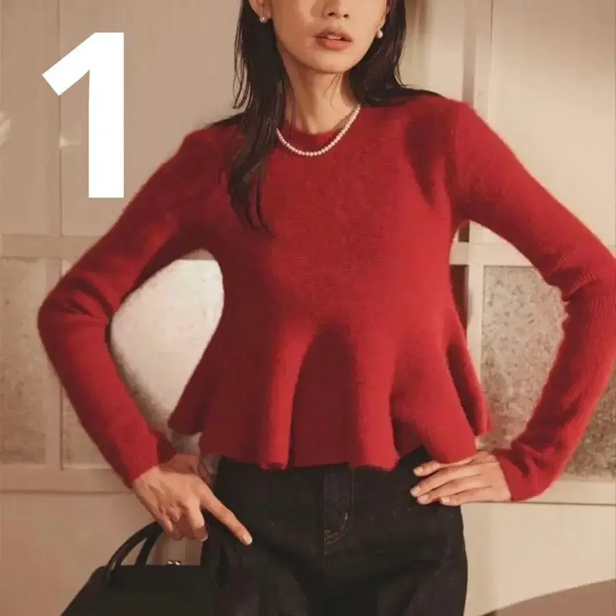 anuans 페플럼 숏 니트탑 레드 1사이즈
