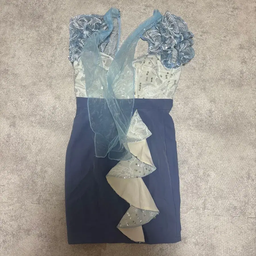 JEWELS 블루 계열 플라워 자수 타이트 드레스 S