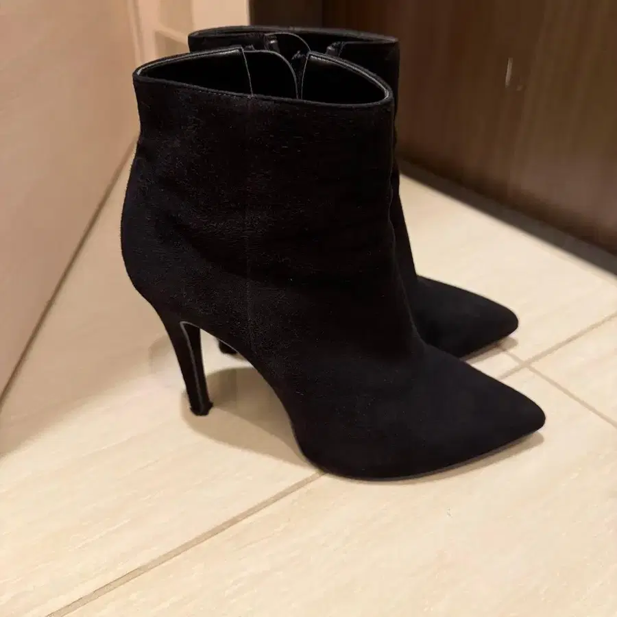 DIANA 블랙 스웨이드 스틸레토 부티 숏부츠