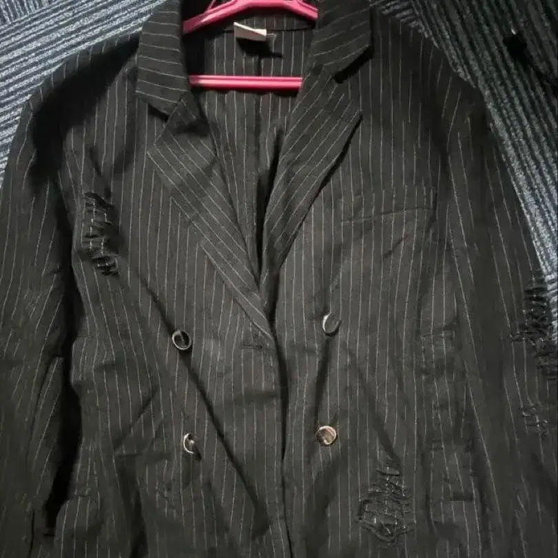 WISHFOREVER 블랙 스트라이프 테일러드 자켓 M 인기 상품