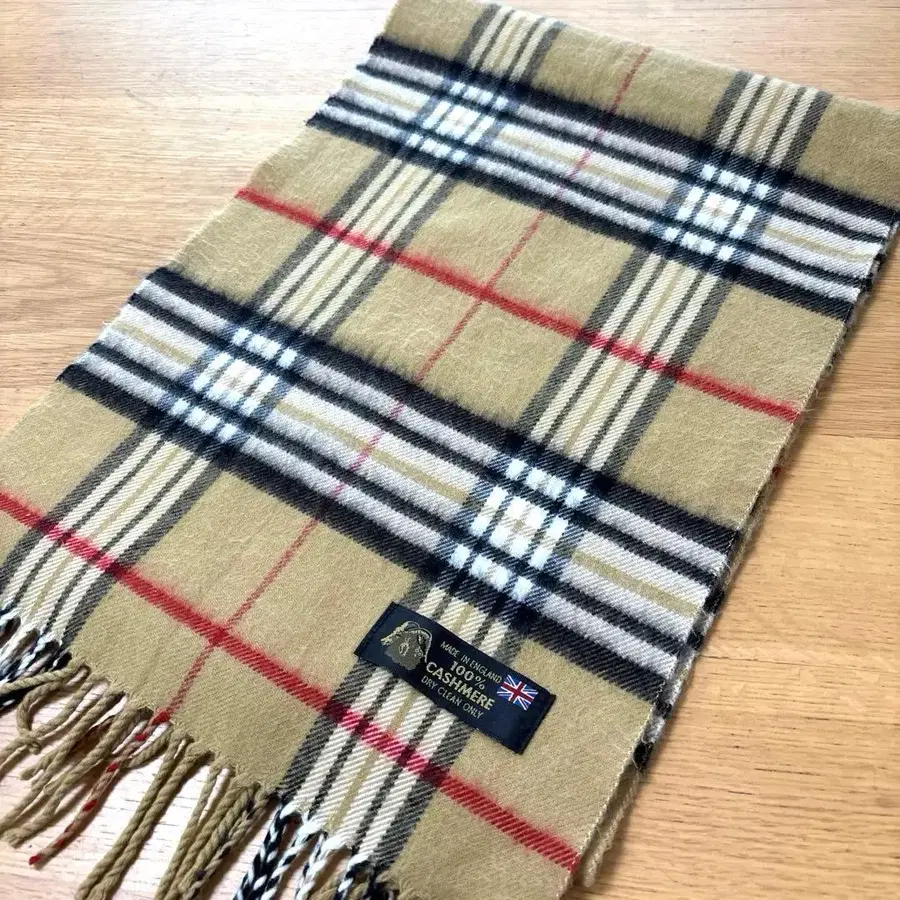 캐시미어 체크 무늬 머플러 베이지 영국제 남녀 공용