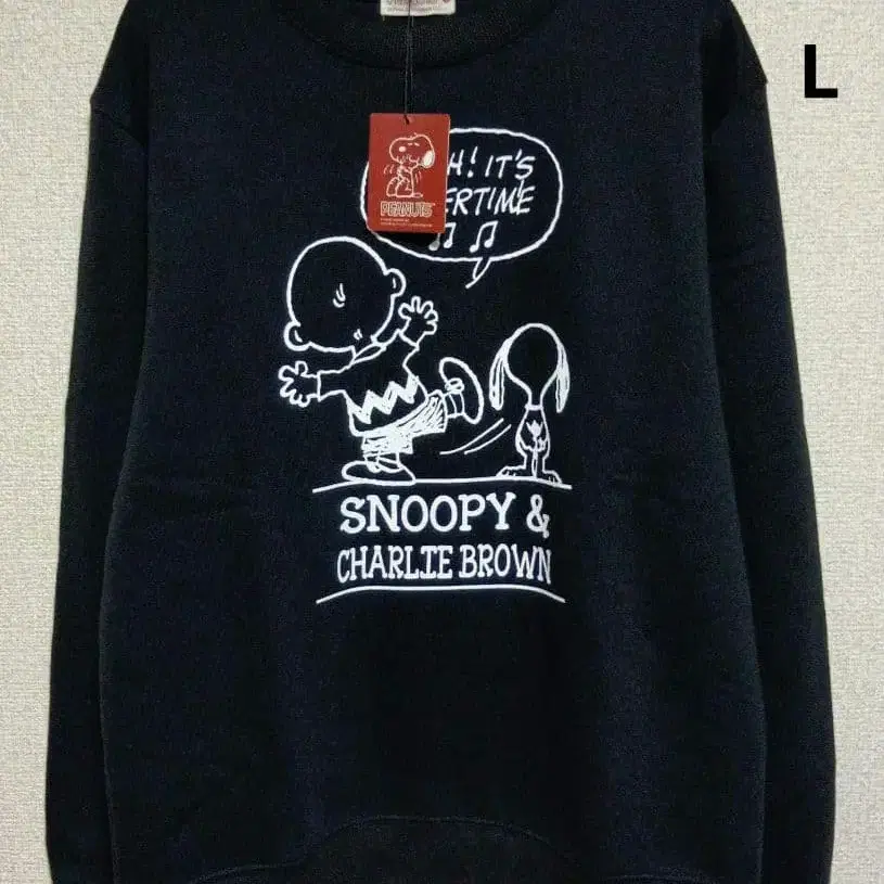 스누피 찰리 브라운 속기모 트레이닝복 긴팔 남성용 L 블랙