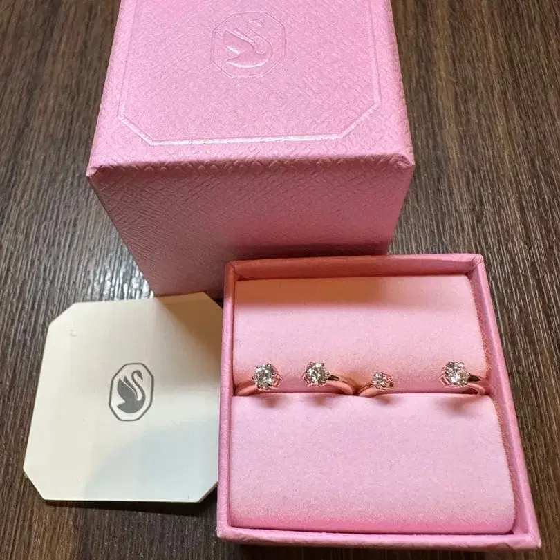 SWAROVSKI 2연 반지 로즈 골드 스톤 사이즈 58