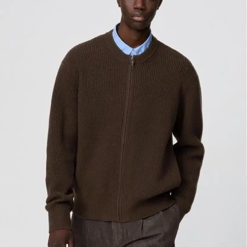 크루넥 풀 집업 가디건 유니클로 XL 다크 브라운