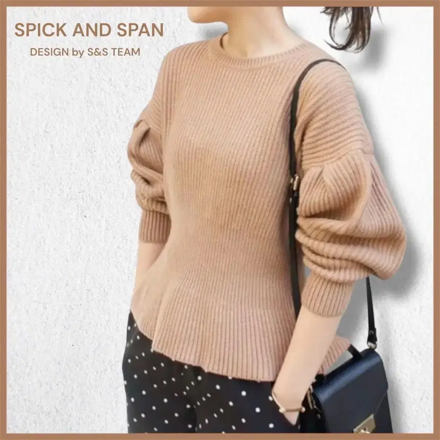 여성용 마톤 슬리브 페플럼 풀오버 니트 스웨터 볼륨 슬리브 울 블렌드