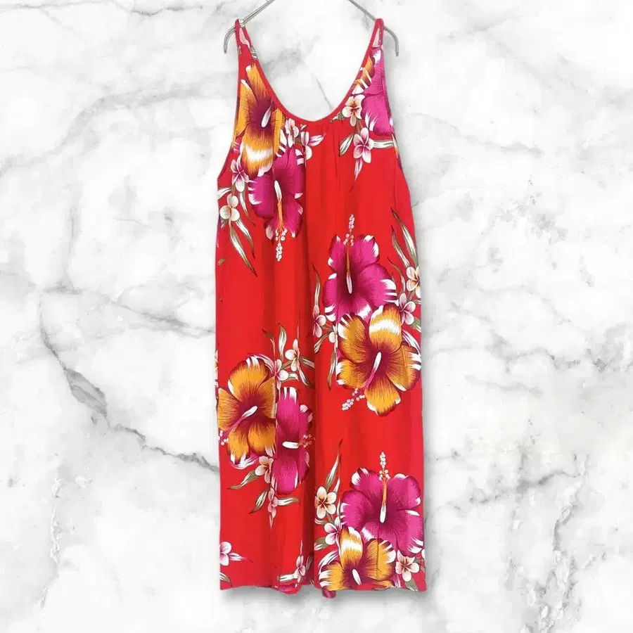 플라워 프린트 하이비스커스 슬리브리스 원피스 롱 기장 화려함