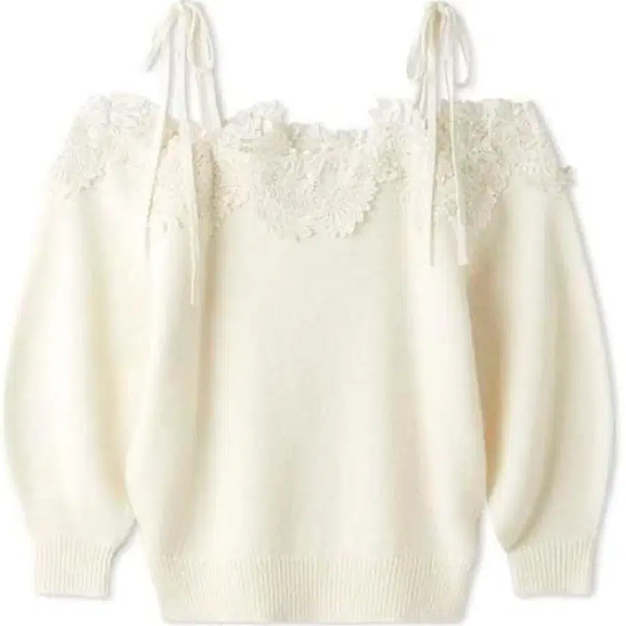 SNIDEL 레이스 트리밍 오프숄더 풀오버 SWNT244047