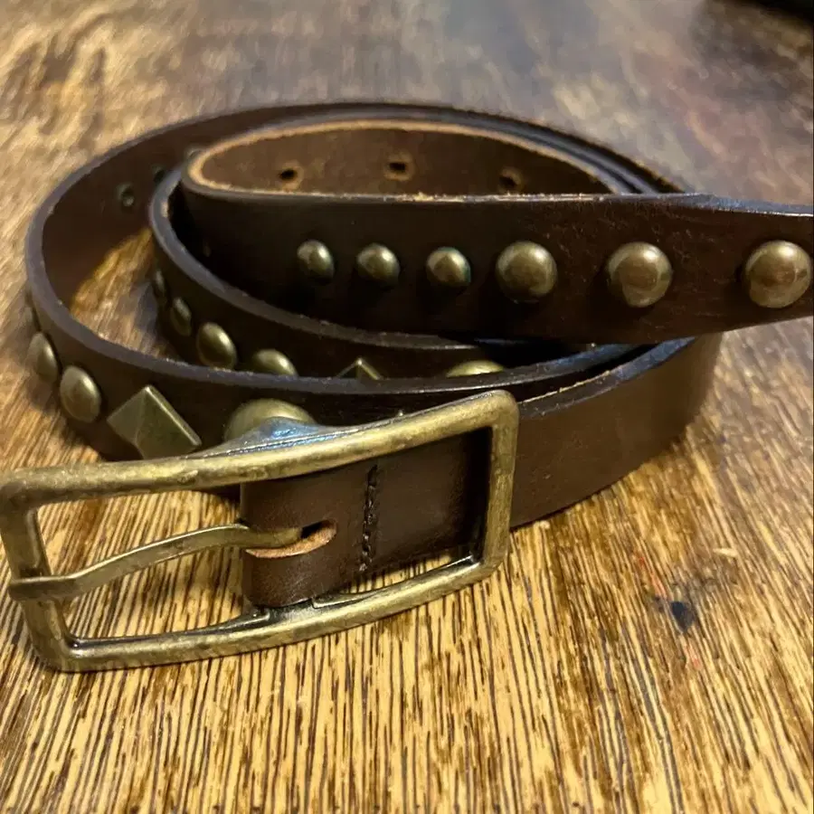 스터드 장식 브라운 가죽 벨트 내로우 벨트