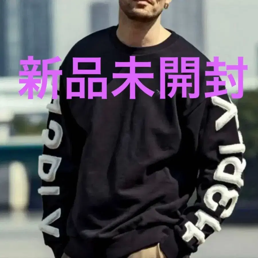1PIU1UGUALE3 RELAX 퍼 아플리케 맨투맨 블랙