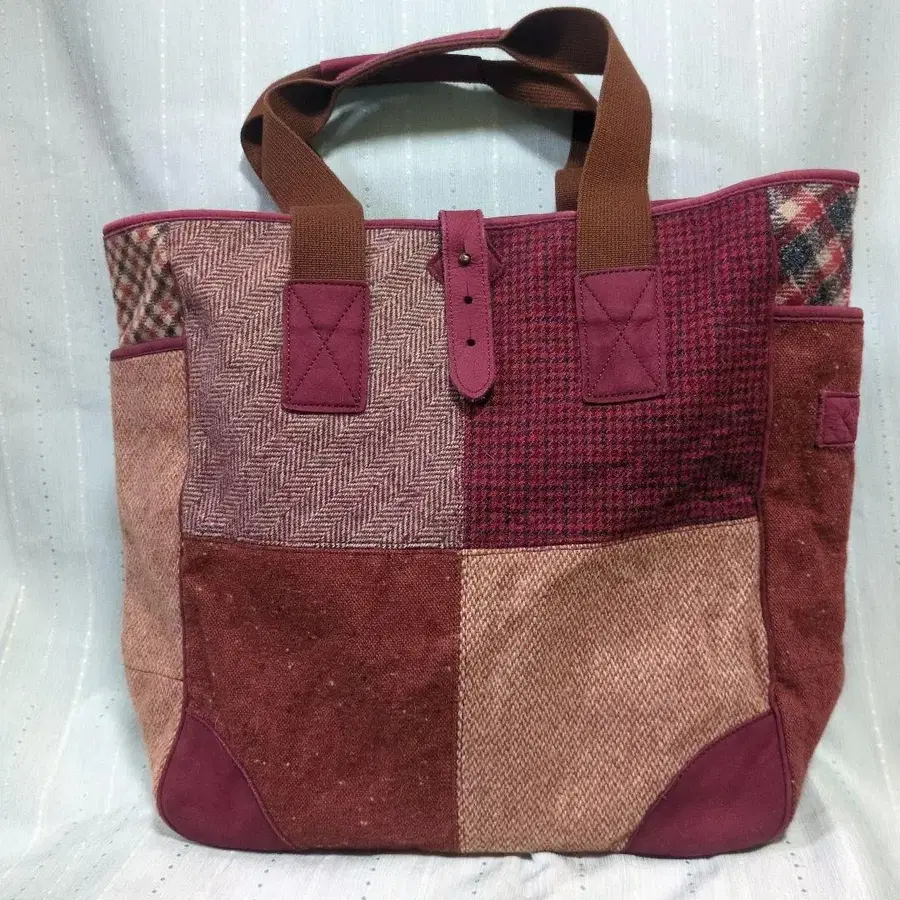 칼 헬무트 패치워크 트위드 토트백 와인 레드 브라운