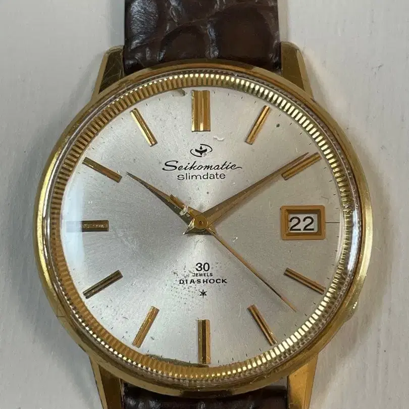 Seikomatic 슬림 데이트 자동 와인딩 시계 실버 다이얼