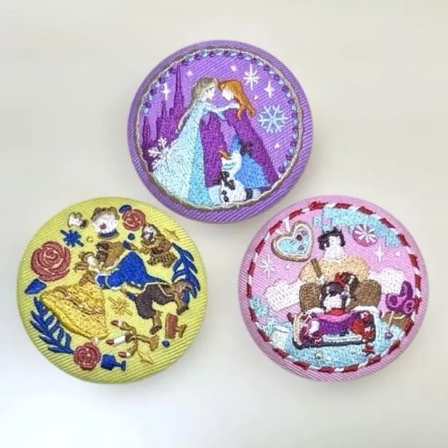 디즈니 자수 캔뱃지2 라푼젤 미녀와 야수 슈가러쉬