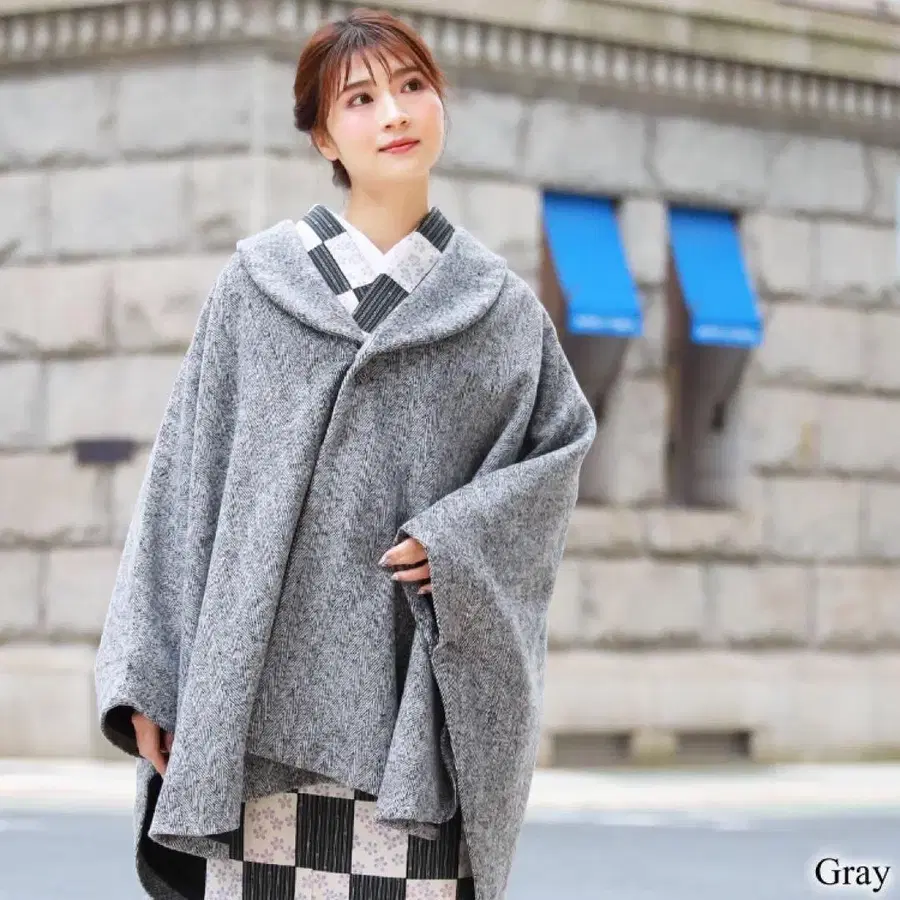 기모노 코트 겨울 그레이 숄카라 기모노 코트 판초 케이프