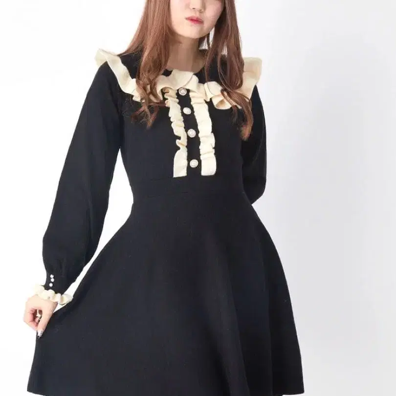 Ank Rouge 프릴 칼라 플레어 니트 원피스 op