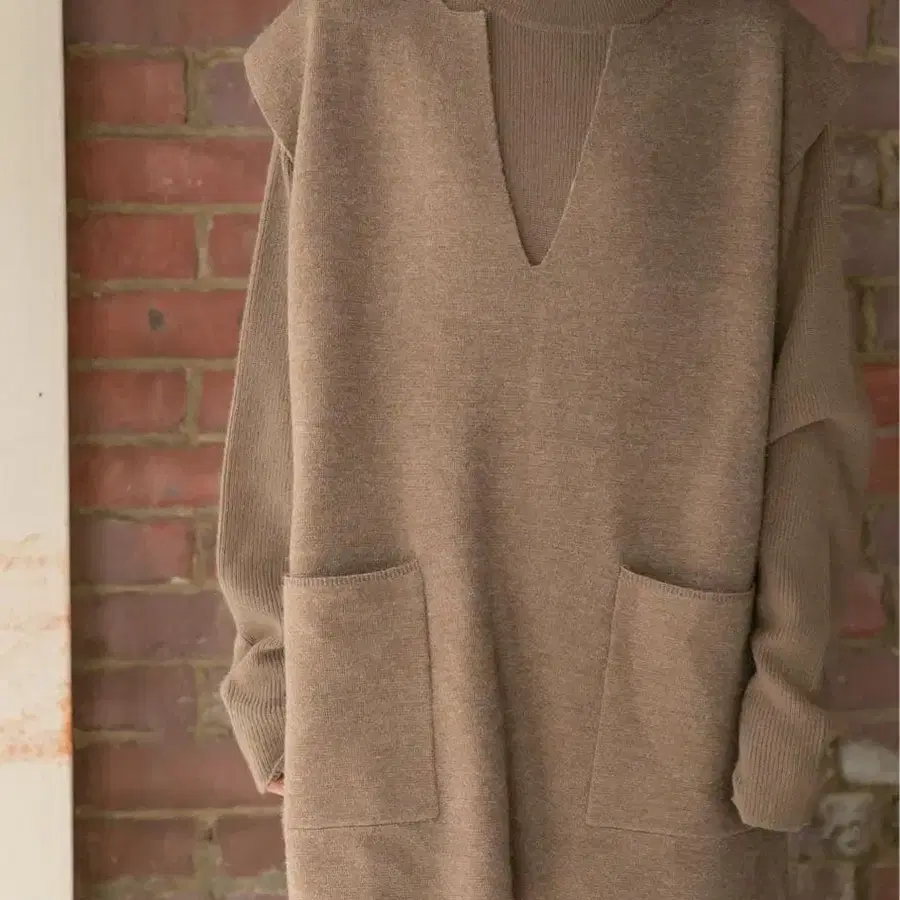 새상품 티티베이트 레이어드 니트 원피스 세트 베이지