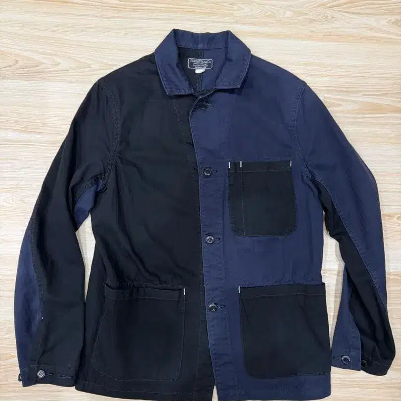 저널 스탠다드 홈스테드, 투톤 컬러의 헤링본 커버올입니다! 컬러 블랙 x 네이비 사이즈 38 기장 69 가슴 너비 52.5 소매 길이 65 어깨 너비 45.5 상태 10 중 7 가격 인하 협상 NG! #OLDJOE