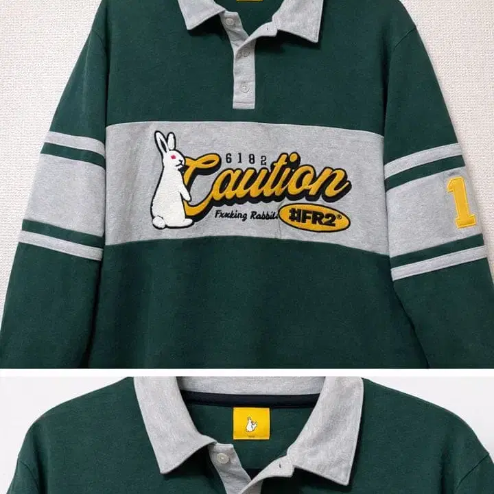 FR2 토끼 자수 다크 그린 피케 셔츠 롱 t 셔츠 M