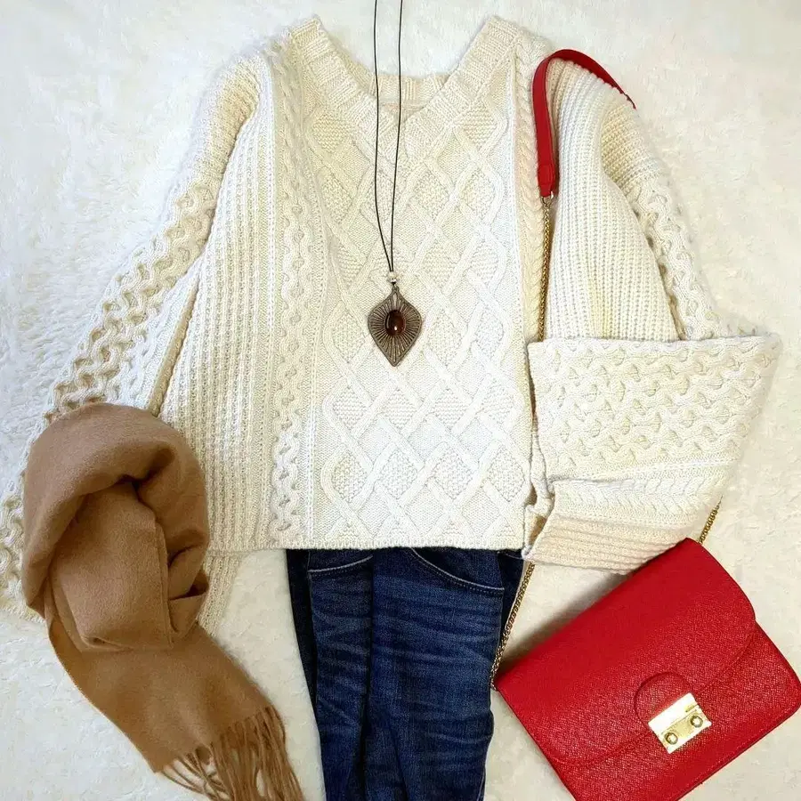 새상품급 TOMORROWLAND 에어얀 케이블 크루넥 풀오버