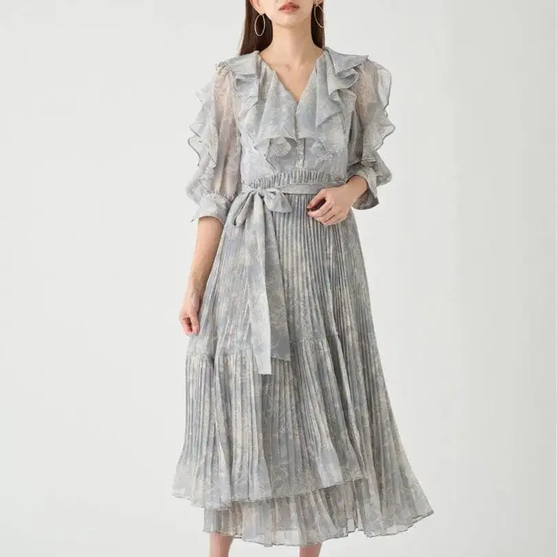 snidel 프릴 플리츠 원피스 blue0 사이즈