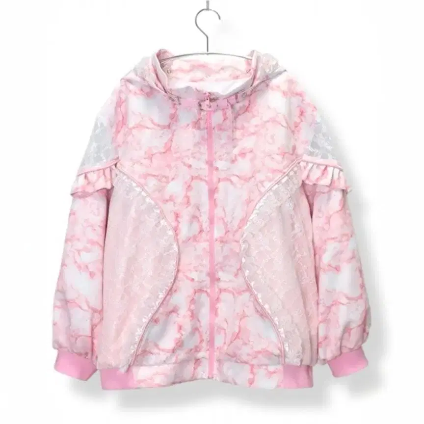 핑크 대리석 무늬 프릴 후드티 & 숏팬츠 & 하프 팬츠 세트