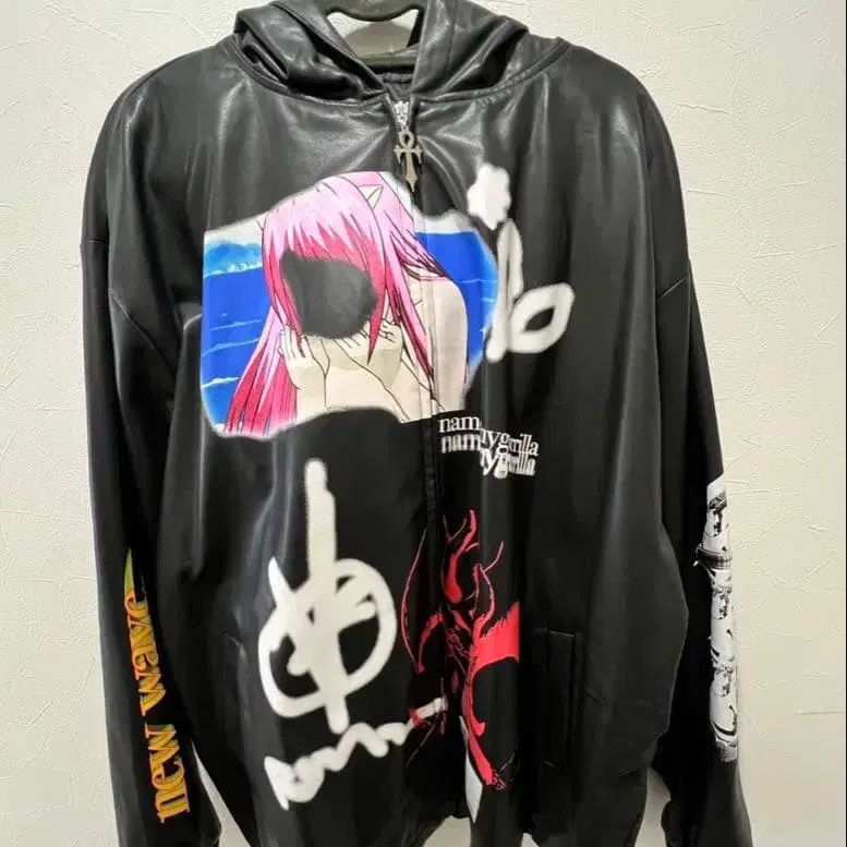 namefunyguerrilla 인조 가죽 후드티 시티 헌터 데빌맨