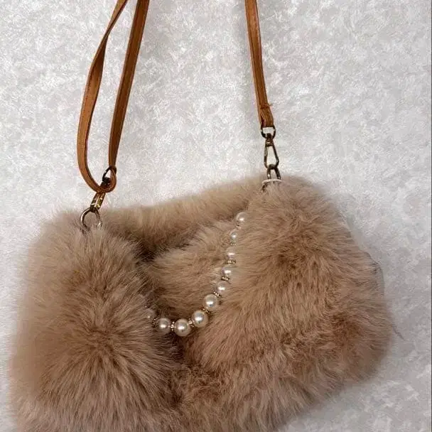 퍼 숄더백 베이지 펄 손잡이 포함
