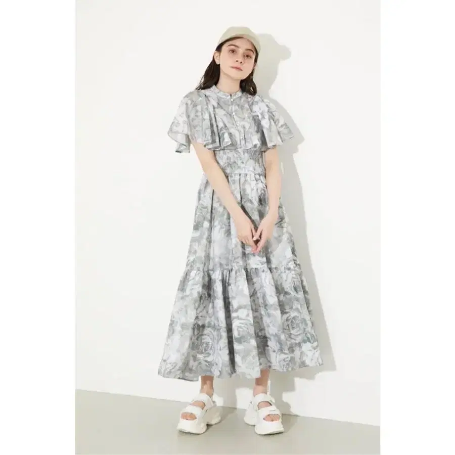 rienda 플레어 슬리브 페인트 플라워 원피스
