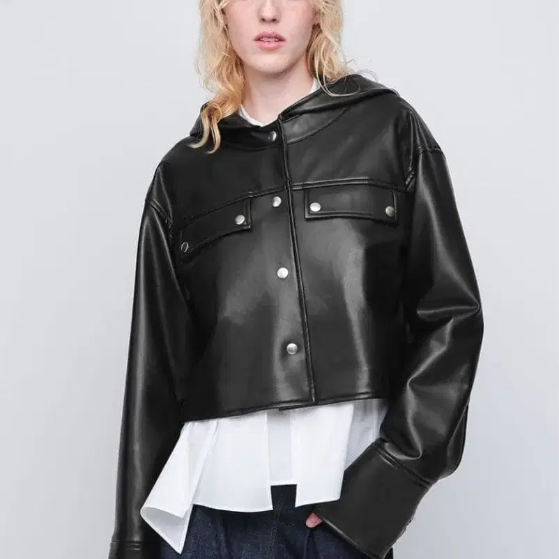 AEWEN MATOPH 가죽 같은 후드 블루종