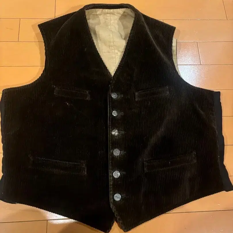 40s 프랑스 빈티지 베스트 코듀로이 동물 버튼